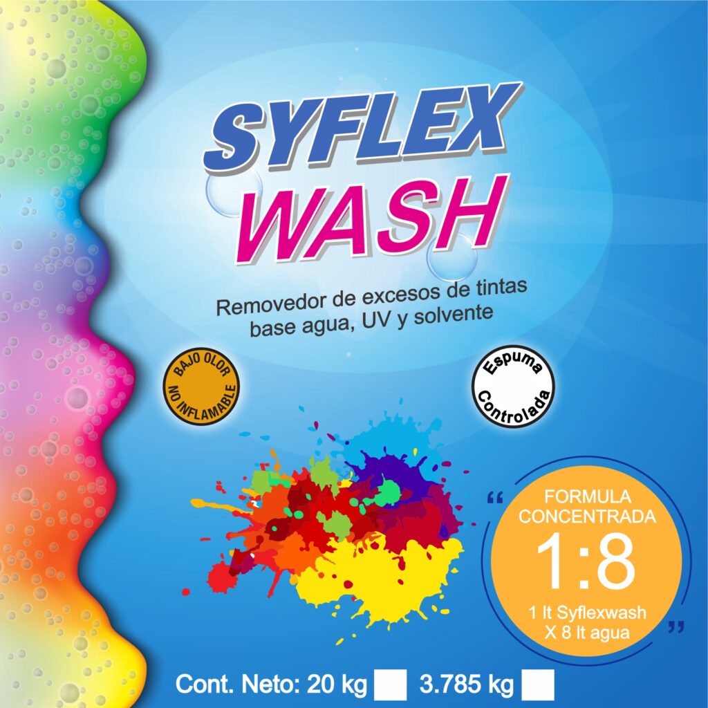 SyflexWash es un detergente industrial versátil para remover excesos de tintas base agua, uv y solvente.